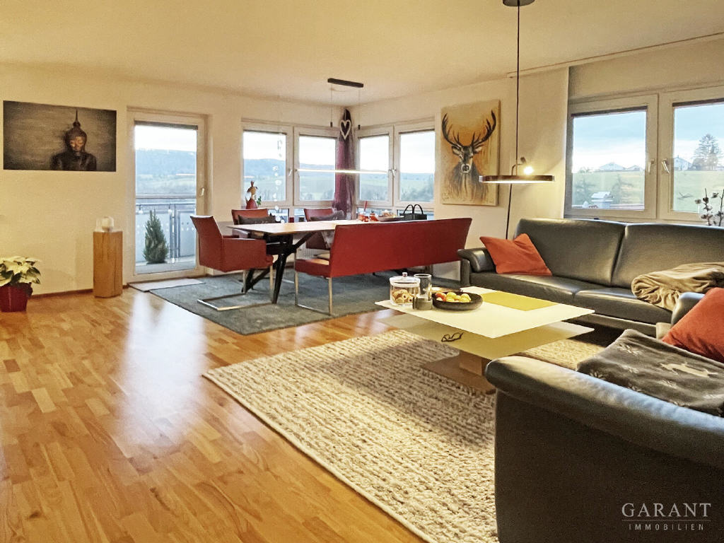 Diese hochwertig ausgestattete Wohnung überzeugt durch ein helles und weitläufiges Wohn- und Esszimmer, das nicht nur im Innenbereich zum Verweilen einlädt, sondern durch den sonnigen Südbalkon mit herrlichem Blick ins Grüne ergänzt wird. Große Fensterflächen sorgen den ganzen Tag über für eine freundliche, angenehme Wohnatmosphäre.