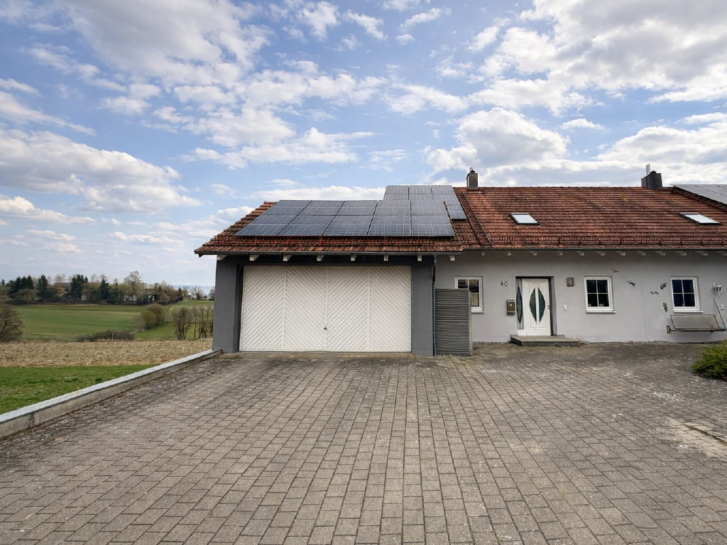 Ausstattung: - Fliesen- und Parkettböden - Zwei Badezimmer (EG mit Wanne, OG mit Dusche) - Einbauküche - Zwei Balkone - Terrasse mit Glasüberdachung - Photovoltaikanlage 12,55 kWp - PV- Speicher 9,9 kW - Schwedenofen - Doppelgarage - ein Außenstellplatz