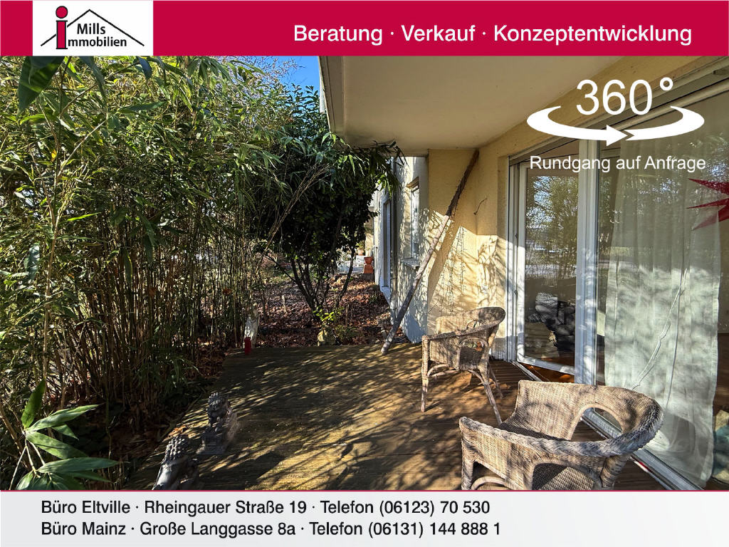 Wohnen am Main: Wunderschöne 2 ZKB-Erdgeschosswohnung mit Terrasse in 1-A-Lage von Mainz-Kostheim