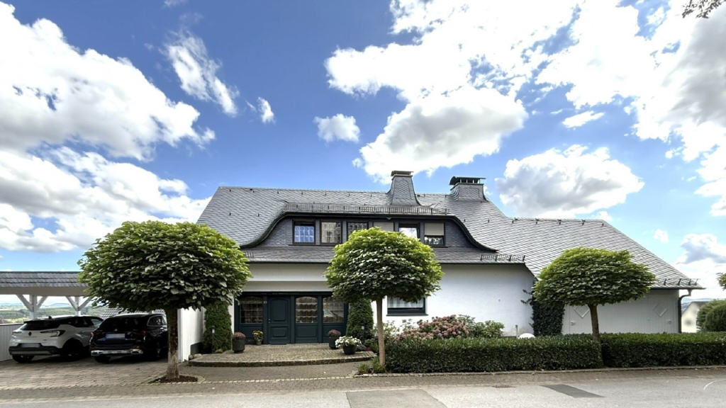 Allgemeine Merkmale: - Gesamtwohnfläche ca. 424 m² - Baujahr 1970* - Ruhige, exklusive Lage mit Panoramablick auf den Sorpesee - Laufend durchgeführte Modernisierungen - Dachaufstockung im Jahr 1982 - Neue Dacheindeckung mit Naturschiefer (2022) - Anbau aus dem Jahr 1997 - Großzügiger Garten mit Terrassen für private Nutzung und Erholung - Hochwertige Materialien und sehr gepflegter Gesamtzustand - Vier Badezimmer (davon 3 En-Suite) sowie zwei Gäste-WCs - Finnische Sauna sowie Dampfsauna/Dusche im Untergeschoss - Separater Weinkeller - Modernisierte Fenster aus 2022 - Doppelgarage - Doppelcarport (Baujahr 2011) - Großzügiger Garten mit Teich und Kaskadenwasserlauf