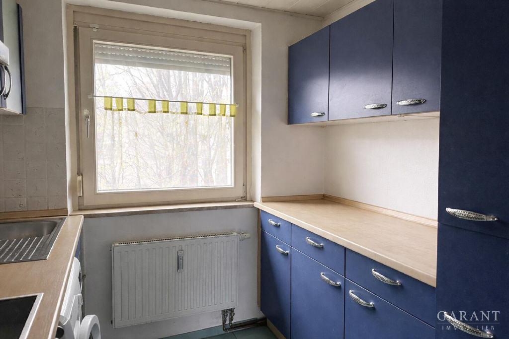 Eine funktionale Einbauküche ist bereits im Kaufpreis enthalten und fügt sich harmonisch in das Gesamtbild der Wohnung ein. Die Eingangstür wurde kürzlich erneuert und unterstreicht den soliden Zustand der Immobilie.