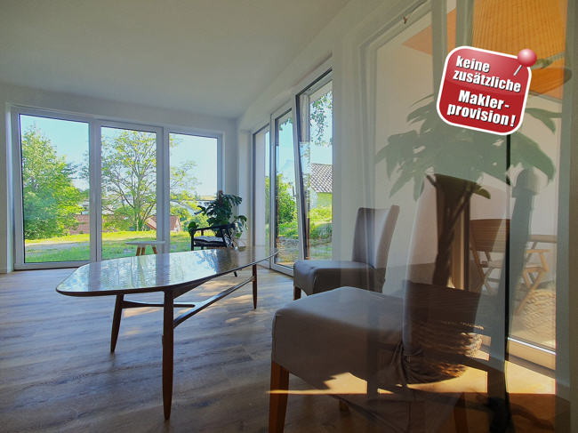 hochwertige Innenausstattung, repräsentative Eingangsdielen, bodentiefe Fenster, Fußbodenheizung, barrierefreies Badezimmer, großzügige Terrassenfläche, Garten zur Gemeinschaftsnutzung, PKW-Stellplätze am Haus, Keller, keine zusätzliche Maklerprovision