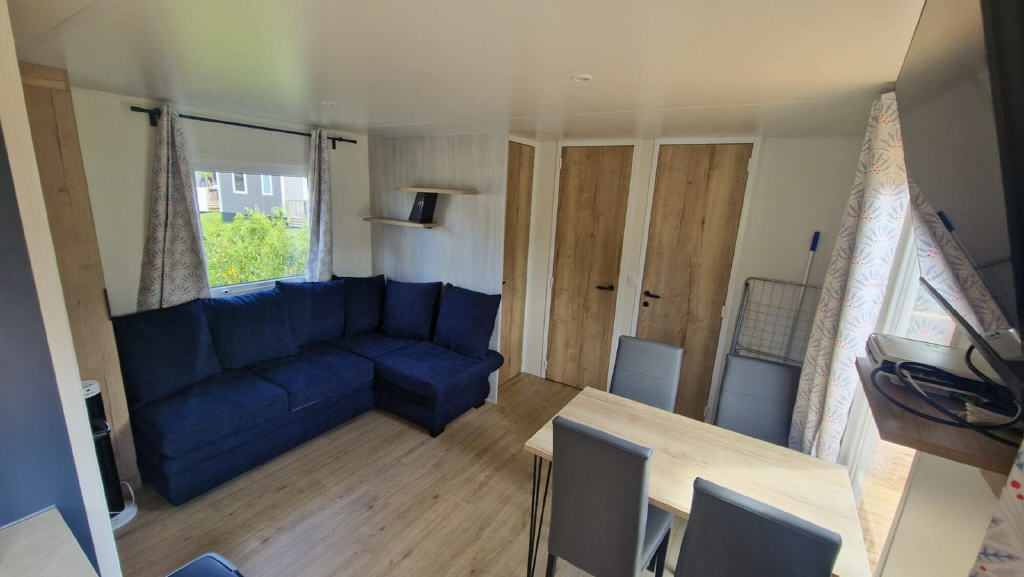 Die Länge beträgt 8 Meter und die Breite 4 Meter. Es verfügt über 2 Schlafzimmer. Inklusive einem Optionspaket mit Insektenschutzgittern und Jalousien in den Schlafzimmern sowie Heizung in allen Räumen.