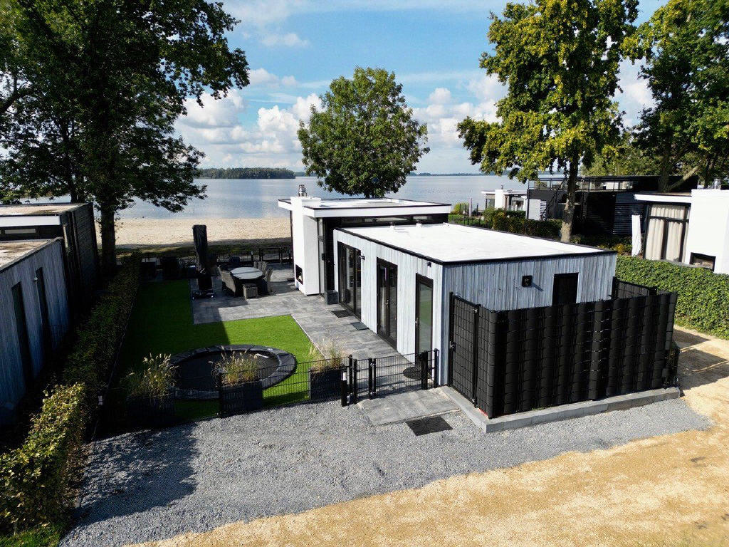 Am Ufer des Veluwemeers, direkt am Wasser, wo Natur, Ruhe und Komfort harmonisch zusammenkommen, befindet sich dieses stilvolle Chalet im EuroParcs Bad Hoophuizen in Hulshorst. Bereits bei Ihrer Ankunft erleben Sie hier das ultimative Urlaubsgefühl. Dieses moderne Chalet aus dem Jahr 2019 steht auf einem großzügigen Eigengrundstück von ca. 240 m², ist vollständig eingezäunt und bietet einen freien Blick auf das Veluwemeer sowie den sonnigen, nach Süden ausgerichteten Garten.