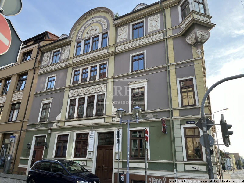 Das Geschäftshaus in Gotha, erbaut um 1900, ist unterkellert und umfasst insgesamt fünf Geschosse: