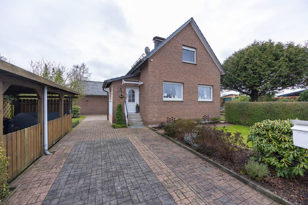 Ein Carport mit zwei PKW-Stellplätzen befindet sich direkt vor dem Haus und ermöglicht komfortables Parken auf dem eigenen Grundstück.